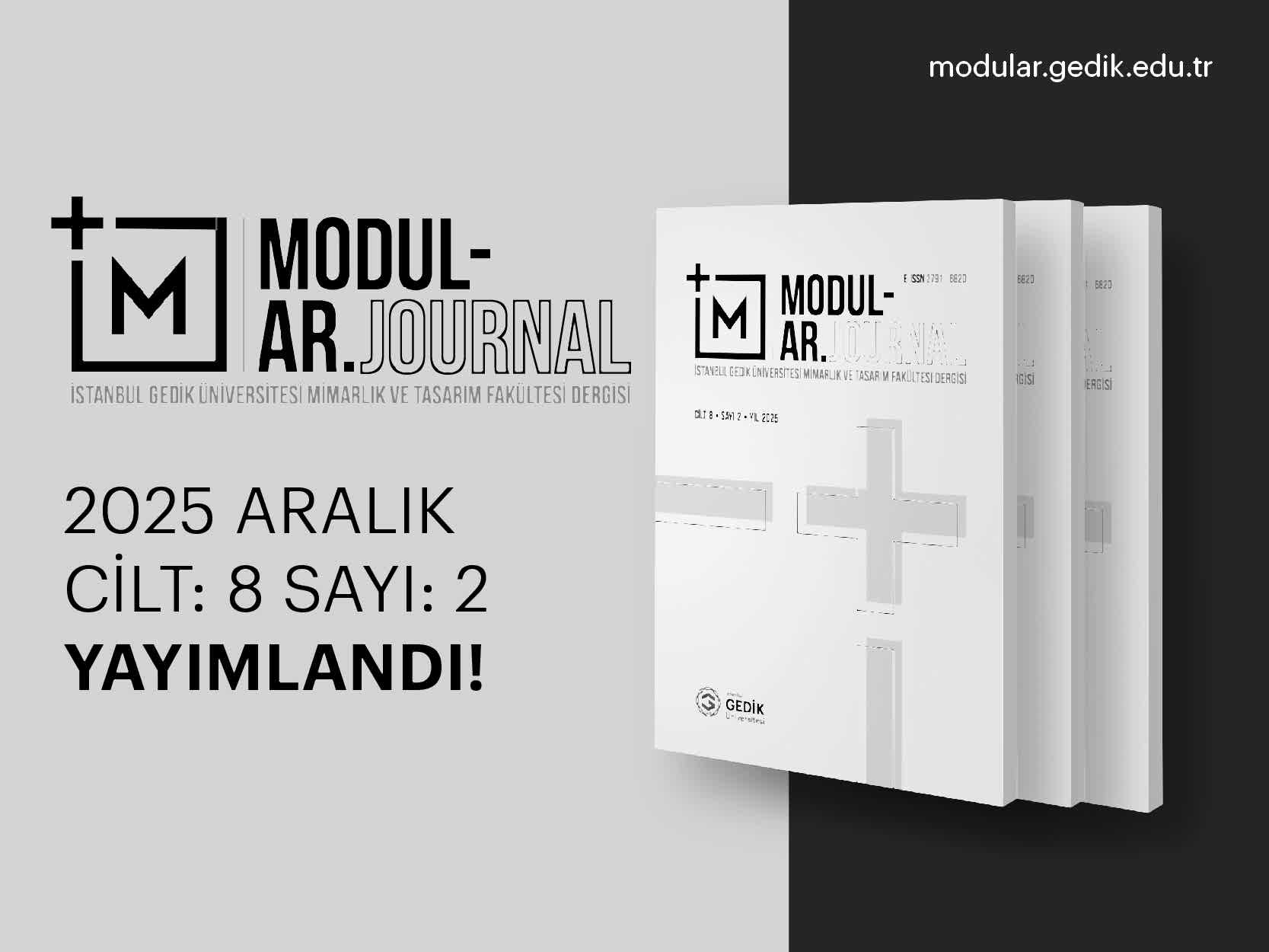 Disiplinler arası yaklaşımı ve metodolojik çeşitliliği teşvik eden yayın politikasıyla uluslararası görünürlüğünü artırmayı hedefleyen ve bu doğrultuda farklı coğrafyalardan araştırmacıları, danışma kurulu üyelerini ve hakemleri ortak bir akademik zeminde buluşturan ve küresel mimarlık ve tasarım tartışmalarına katkı sunan Modular Journal’ın Aralık 2025 sayısına erişmek için tıklayınız.